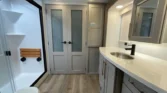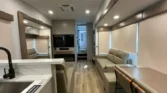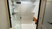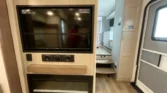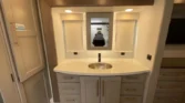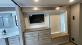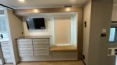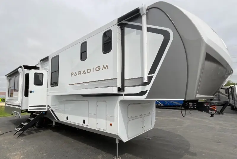 The Alliance RV Paradigm is designed to combine comfort, technology, and durability for modern RV living. Its living spaces include patio awning LED lighting, quad strut assist solid entry steps, and Congoleum flooring. Atrium windows with MCD roller shades provide natural light and privacy. A tri-fold sofa hide-a-bed, entertainment center, and fireplace space heater create a cozy atmosphere. Hardwood cabinetry with hidden hinges and soft-close catches adds a residential touch. The kitchen features LG solid surface countertops, a large undermount sink, and a pull-out sprayer faucet. Appliances include a 12V 19cf refrigerator, Insignia range with oven, microwave, and dishwasher prep. Dining is supported by a wall-mount dinette table and pantry with LED motion lighting. Electronics include USB charging ports, backup camera prep, Winegard Air 360 antenna, WiFi prep, and a 50-inch HD Smart TV. Outdoor marine-grade speakers extend entertainment beyond the interior. Sleeping quarters offer a king-size bed, residential headboard, nightstands, and underbed storage with gas struts. Additional conveniences include bedside outlets, USB ports, reading lights, and washer/dryer prep. The bathroom provides an epoxy poured lavatory top, undermount sink, large residential shower, and porcelain toilet with soft-close seat. Mechanicals include a 320W solar panel, 20-amp controller, 60 lb LP capacity, and a 40K furnace. Climate control is supported by three AC units totaling 40.5K BTUs and 12V tank heat pads. The coach build features a drop frame chassis, MORryde suspension, Dexter axles, and self-adjusting brakes. Construction highlights include Azdel composite walls, high-gloss fiberglass, seamless PVC roofing, and a 6-point hydraulic leveling system.