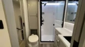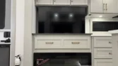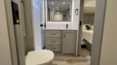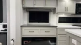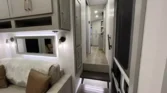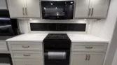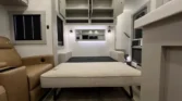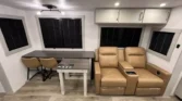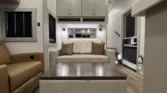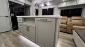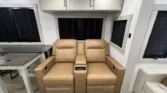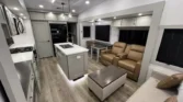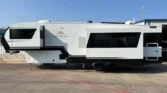 The Brinkley RV Model Z is a luxury mid-size fifth wheel designed for comfort and versatility. Its living spaces include under-coach ground LED lighting, motion sensor scare lights, and two power awnings with LED strips. Entry is enhanced by floating lighted steps, a telescoping grab handle, and keyless access. Interior features include dimmable LED lighting, Euro frameless windows, integrated shades, and an entertainment center with fireplace. Seating options include wall-hugger theater chairs…