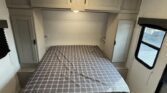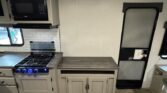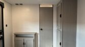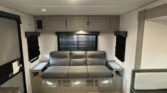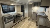 The 272RLS features a large open-space concept rear living with both a jack-knife sofa, u-dinette, and private front-end bedroom. The front bedroom is the industry’s largest non-slide master bedroom in a conventional travel trailer. The non-camping side features a u-dinette plus an extra-large 11 cu. ft. refer across from the entertainment center and kitchen area. The front bedroom comes with a walk-around RV queen bed and hidden storage. #CampEasy