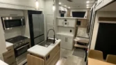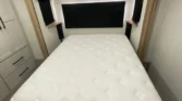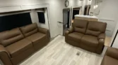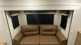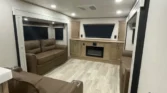 The Sandpiper is a full-profile fifth wheel designed with chef-inspired kitchens and premium comfort packages. Its living spaces include a power awning with LED strip, porch light, MORryde quad entry steps, and friction hinge entry door. Tinted safety glass windows with vented slideout panels and roller shades enhance privacy and airflow. The entertainment center features a fireplace space heater, Smart TV, and premium soundbar system. Seating options include sofa sleepers, theater seating, and overhead cabinetry. The kitchen offers solid surface countertops, designer backsplash, stainless steel apron sink, and commercial-style faucet. Appliances include a 17cf 12V refrigerator, 22-inch oven, 30-inch microwave, and stainless appliance package. Dining is supported by table-and-chair sets or booth seating, depending on model. Electronics include a systems center, auto-leveling system, backup camera prep, and four-camera security prep. Connectivity is enhanced by RG-6 coax hookups, King WiFi extender, and outdoor speakers. Sleeping quarters feature queen or king beds, memory foam mattresses, wardrobes, dresser drawers, and washer/dryer prep. Bathrooms include medicine cabinets, vanity sinks, linen storage, porcelain toilets, and showers with seats and skylights. Mechanicals include a BoonDocker solar package with 200W panel, dual LP bottles, 65-amp converter, and tankless hot water. Climate control is supported by dual 15K AC units, a 35K furnace, and heated holding tanks. The coach build uses a powder-coated cambered chassis, Dexter axles, aluminum wheels, and Goodyear tires. Construction highlights include vacuum-bonded walls, gelcoat fiberglass exterior, truss roof rafters, radiant foil insulation, and seamless PVC roofing. Exterior durability is ensured with underbelly armor, slam-latch cargo doors, and unobstructed pass-through storage.