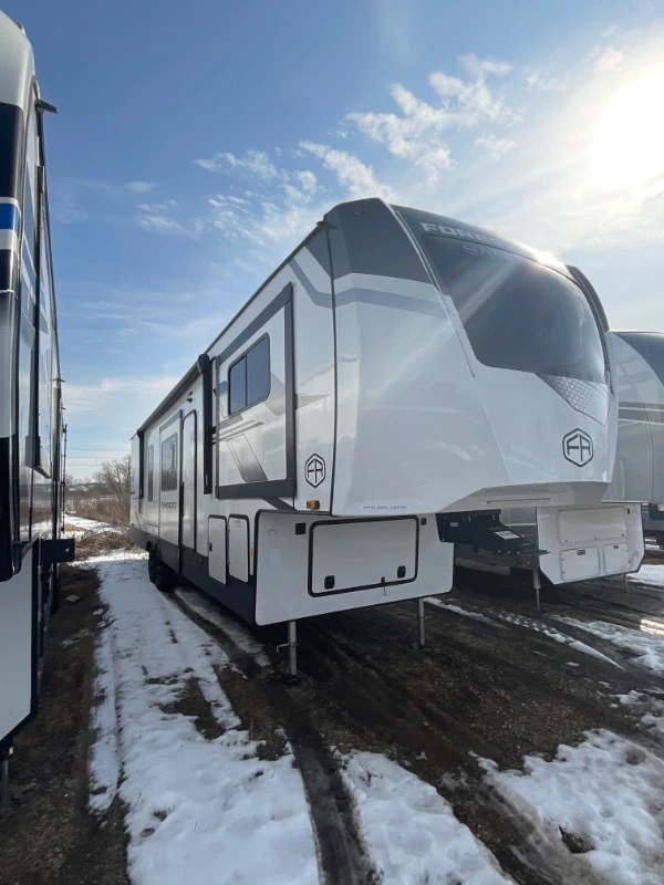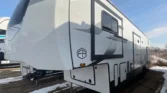 The Sandpiper is a full-profile fifth wheel designed with chef-inspired kitchens and premium comfort packages. Its living spaces include a power awning with LED strip, porch light, MORryde quad entry steps, and friction hinge entry door. Tinted safety glass windows with vented slideout panels and roller shades enhance privacy and airflow. The entertainment center features a fireplace space heater, Smart TV, and premium soundbar system. Seating options include sofa sleepers, theater seating, and…