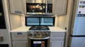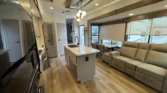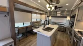 Appliances feature a 12V 19cf refrigerator, Lusso range with oven, residential microwave, and dishwasher prep.