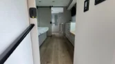 Inside, Congoleum flooring, recessed LED lights, and roller shades create a warm residential atmosphere.