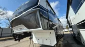 Living spaces include adjustable Solera awnings with LED strips, MORryde safety rails, and quad solid steps.
