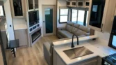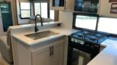 Kitchen amenities include a large undermount sink, sprayer faucet, drying rack, and 12V 19cf refrigerator.