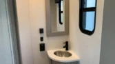 Easy‑clean vinyl flooring, dimmable LED lights, and designer window treatments create a modern atmosphere.