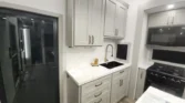 The kitchen includes premium cabinetry, pullout pet bowls, pantry shelves, spice rack, and magnetic knife rack.