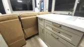 Living spaces offer ground lighting, three electric awnings, keyless entry, and Euro windows with integrated shades.