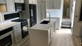 The kitchen includes premium cabinetry, pullout pet bowls, pantry shelves, spice rack, and magnetic knife rack.