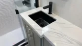 Bathrooms include solid surface vanities, neon shower lighting, multiple shower heads, and porcelain toilets.