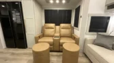 The living area features an entertainment center, fireplace space heater, wall‑hugger theater seating, and…