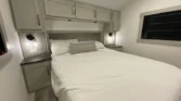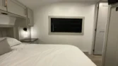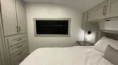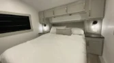 The bedroom offers king or queen beds, memory‑foam mattresses, bedside shelves, and under‑bed storage.