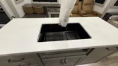 Kitchen amenities include solid surface countertops, tile backsplash, farmhouse sink, and residential microwave.