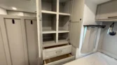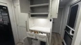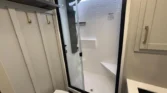 Mechanicals boast solar panels, lithium‑ready inverter prep, tankless hot water, multiple AC units, and one‑touch automatic leveling for reliable performance