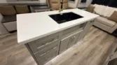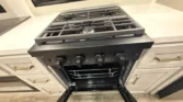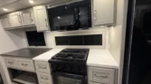 Appliances include a 16cf refrigerator, 30‑inch microwave, and outdoor LP quick connect.