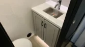 Inside, vinyl flooring, LED accent lighting, and handcrafted cabinetry create a residential atmosphere.