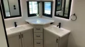 Keyed‑alike locks, frameless windows, and privacy roller shades add security and style.