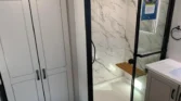 Bathrooms feature LED backlit mirrors, linen storage, walk‑in showers with teak seats, and porcelain toilets.